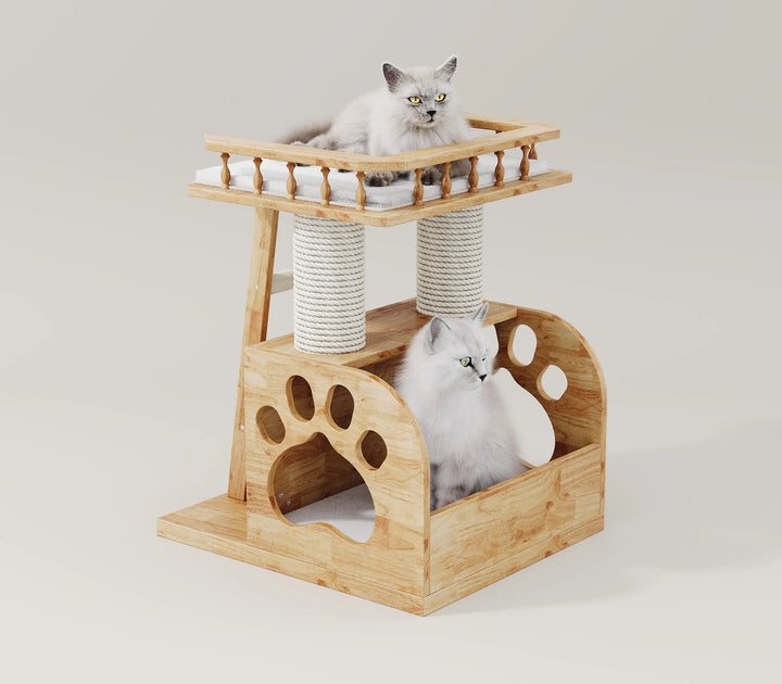 Crafted from solid, natural wood, this cat tree is highly durable and safe for daily use, while also being an eco-conscious choice for your home.