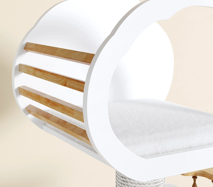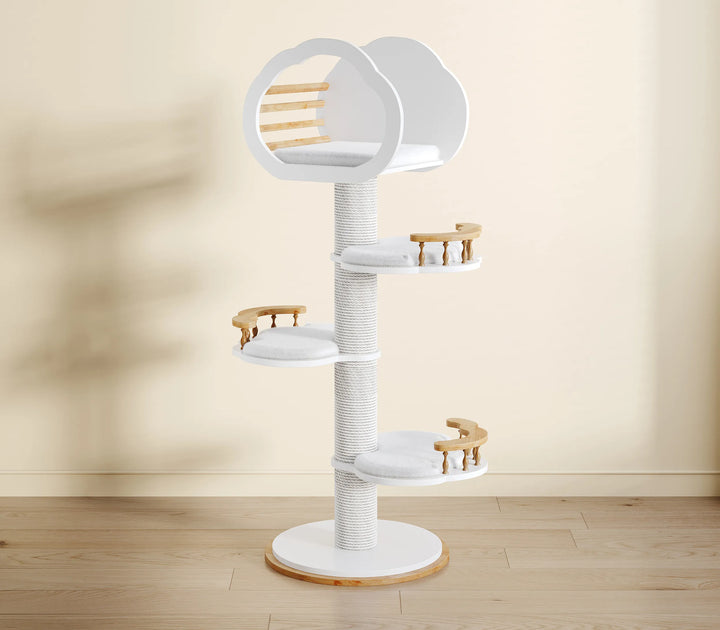 Featuring a soft cloud-shaped top, this cat tree combines a playful look with refined crafts manship. Its versatile and aesthetically pleasing design allows it to blend seamlessly into your home decor, serving as a charming piece of cat-friendly furniture.