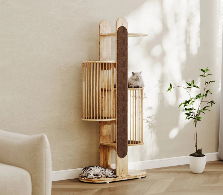 Elevating pet furniture to an art form, this cat tree features a sophisticated ice cream-inspired design crafted with precision and premium materials. Its elegant aesthetic and neutral palette allow it to blend seamlessly with any interior style-serving equally as a functional playground for your cat and a tasteful decorative accent in your home.